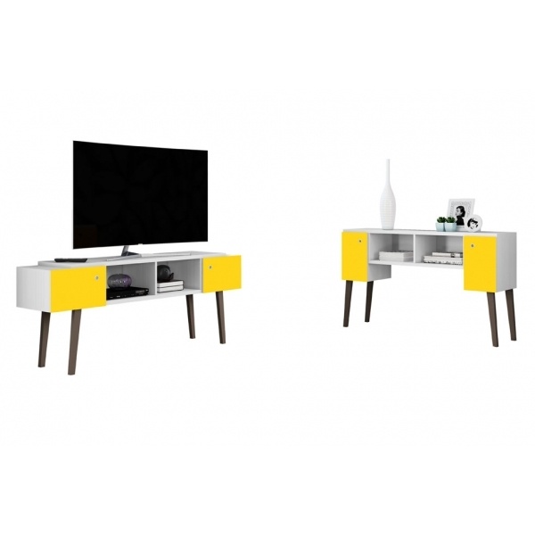 rack tv mueble aparador patas blanco amarillo moderno sala dormitorio soporte televisor organizador madera diseño