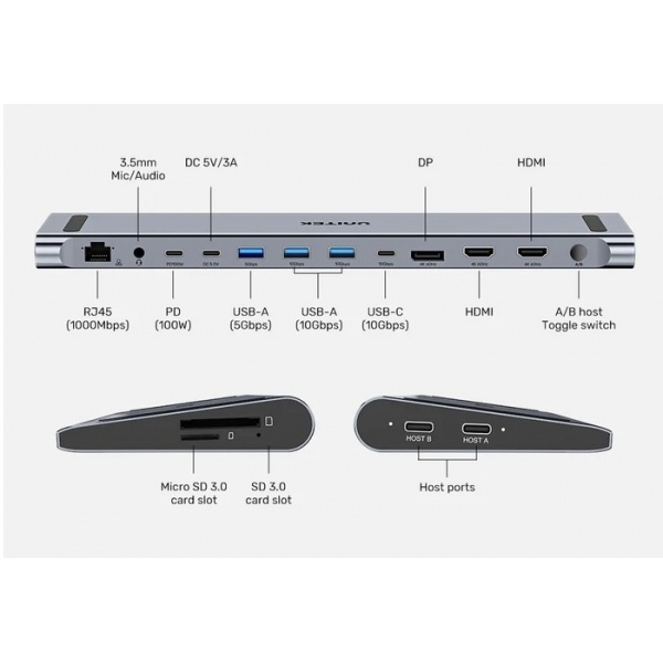 hub unitek usb-c 15 en 1 4k hdmi pd sd lan ethernet adaptador multifunción usb hub usb-c hub hdmi hub ethernet hub sd hub vga hub profesional
