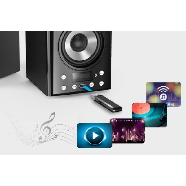 Disfrutá de un sonido envolvente y potente con los parlantes Genius SP-HF2800, ideales para tu PC, TV o cualquier dispositivo con bluetooth o entrada auxiliar. Su diseño elegante y controles intuitivos te brindan comodidad y calidad en cada uso.