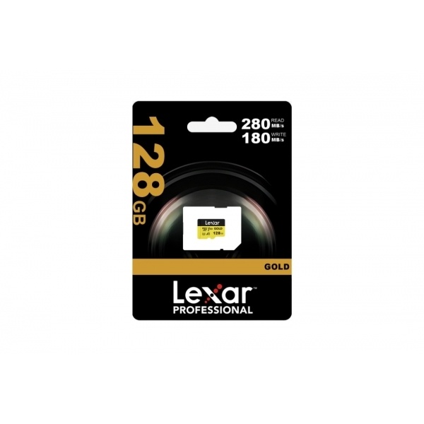 memoria microsdxc lexar pro gold 128gb uhs ii tarjeta camara drone video 4k almacenamiento rapido profesional adaptador sd