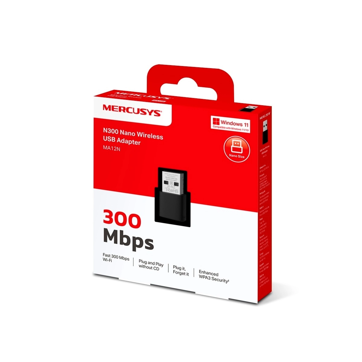 adaptador mercusys ma12n n300 wifi300 usb tarjeta red inalámbrica pc notebook