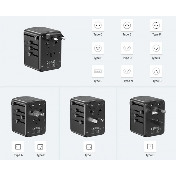 Cargador Universal Unitek 35W es el adaptador perfecto para quienes necesitan cargar varios dispositivos al mismo tiempo. Incorpora 2 puertos USB-C Power Delivery (PD) de hasta 35W y 3 puertos USB-A 3.0 de 12W, permitiendo carga simultánea de smartphones, tablets y accesorios. Compatible con más de 200 países gracias a sus enchufes integrados.