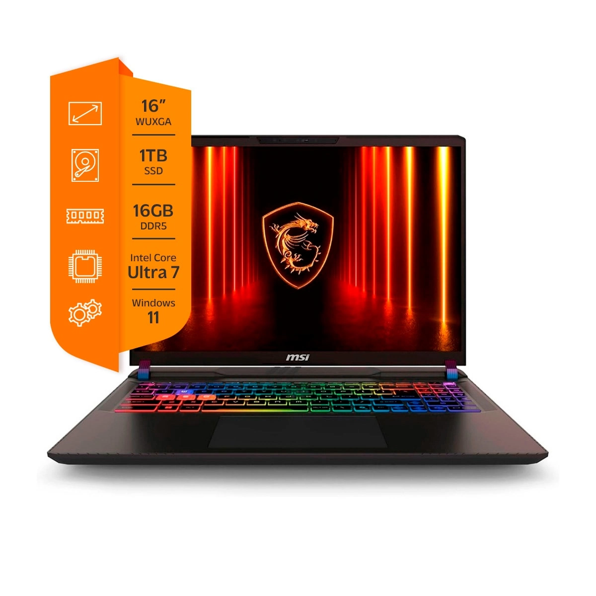 notebook gamer msi vector 16 ultra 7 16gb 1tb wuxga rtx5070 ti 12gb laptop portátil gaming pantalla grande alto rendimiento windows 11